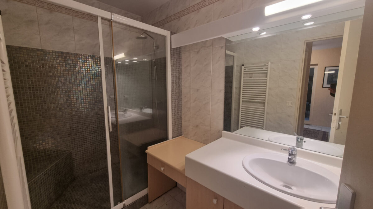 Le bien est composé d’une entrée avec grand placard distribuant un agréable salon/séjour de 22 m2 ouvert sur la loggia et le jardin, une cuisine indépendante de 9 m2 également ouverte sur la loggia, enfin un dégagement donnant accès à une grande chambre de 13 m2 avec placard, à une belle salle d’eau de près de 5 m2 et à un WC indépendant.